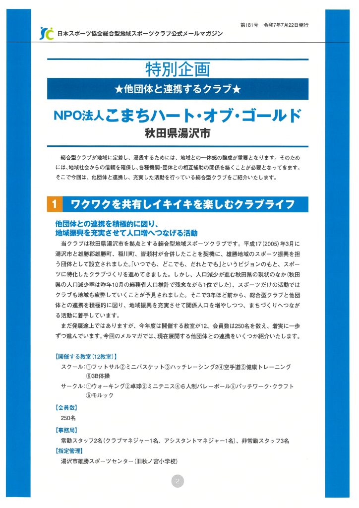 【特別企画】他団体と連携するクラブで取り上げられました。(R7・7・22発行)